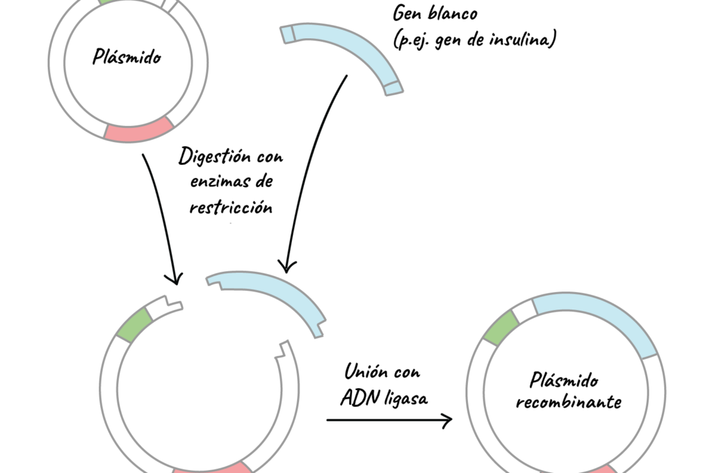* Una vez se ha aislado el gen de interés y se ha creado el vector de clonación, ambos se unen mediante enzimas de restricción.