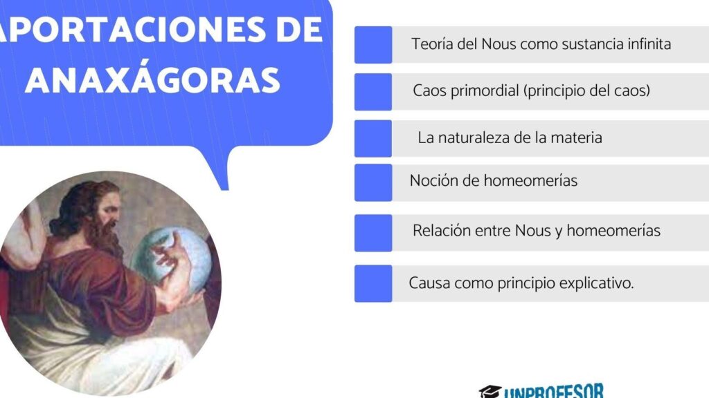 La teoría de Anaxágoras, filósofo griego del siglo V a. C., se fundamenta en los siguientes principios: