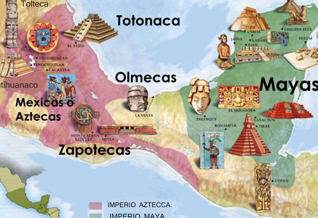 * Una religión politeísta con sacrificios humanos: Los aztecas tenían un sistema religioso complejo y practicaban sacrificios humanos a gran escala. Los mayas también eran politeístas, pero sus prácticas religiosas eran menos sanguinarias.
