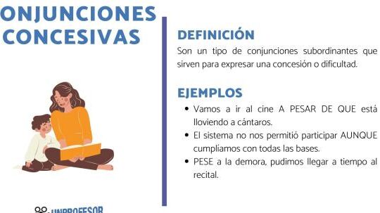 Las conjunciones concesivas son palabras o frases que unen dos cláusulas y expresan una concesión o admisión de un hecho, mientras que al mismo tiempo enfatizan una idea contraria.